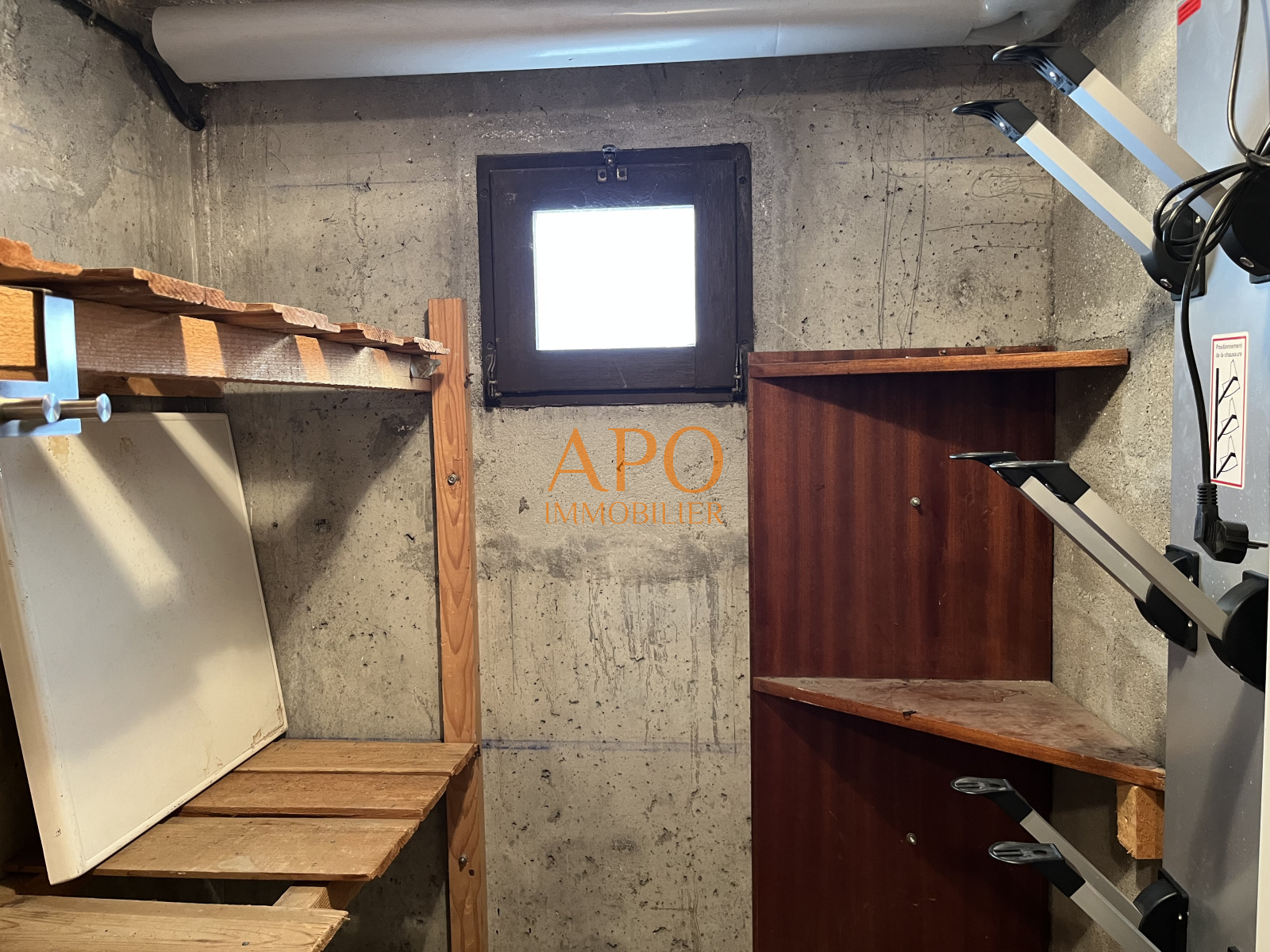 Il est complété au RDC par une grande cave de 5.60 m² avec fenestron, électricité et séche-chaussures de ski (4 paires)